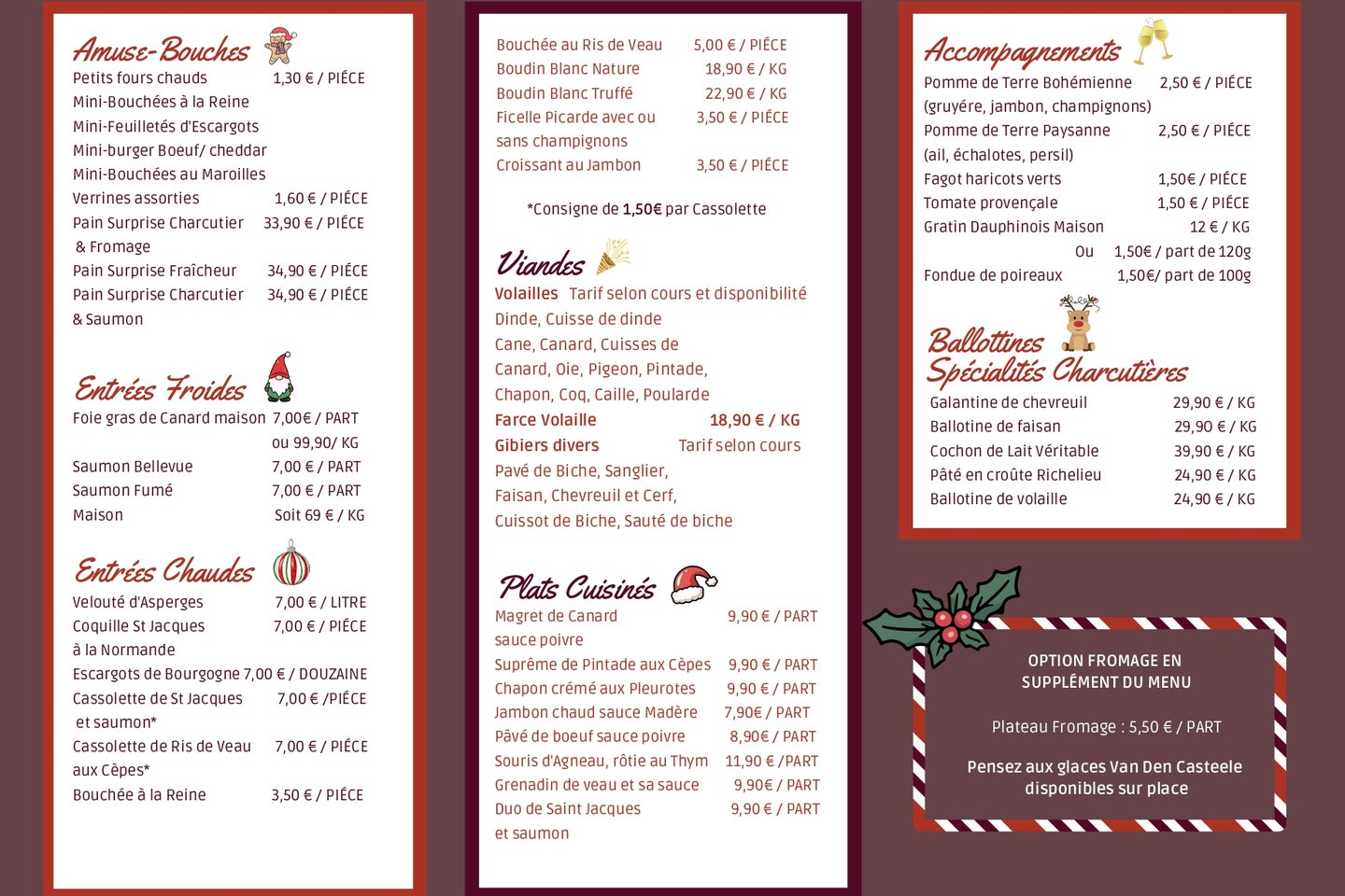 Viandes : Rosbeef, rôti porc, cuisse de poulet, assortiment de charcuterie