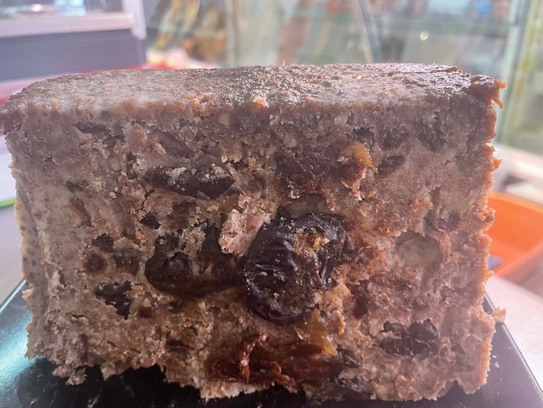 Pâté aux pruneaux et raisins secs et cassonade au goût authentique.